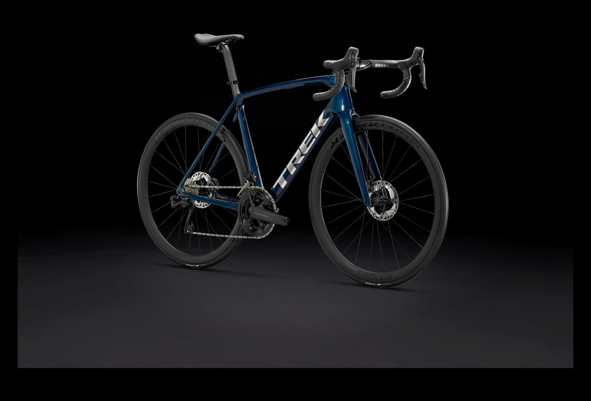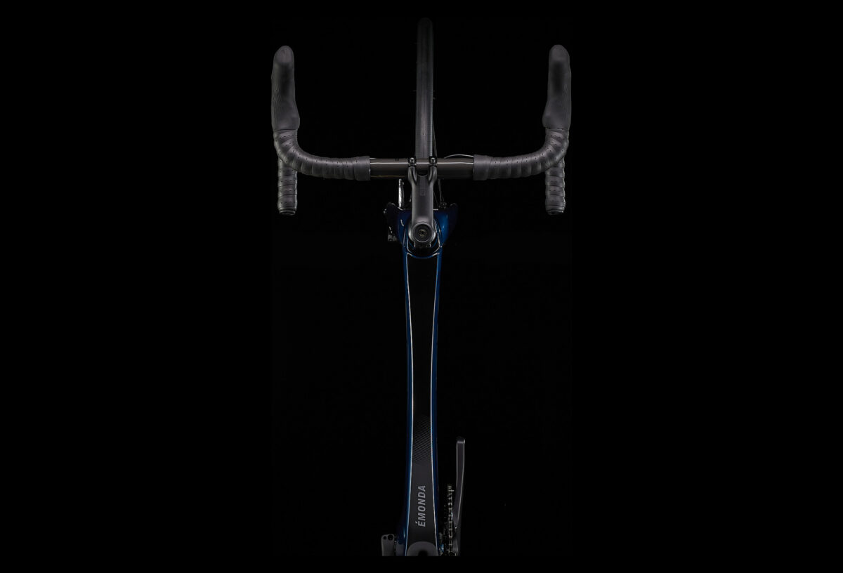 Carbone : Emonda SL 7 tout en carbone, pivot conique, acheminement interne des câbles de frein, freins à disque à fixation Flat-Mount, axe traversant 12×100 mm |